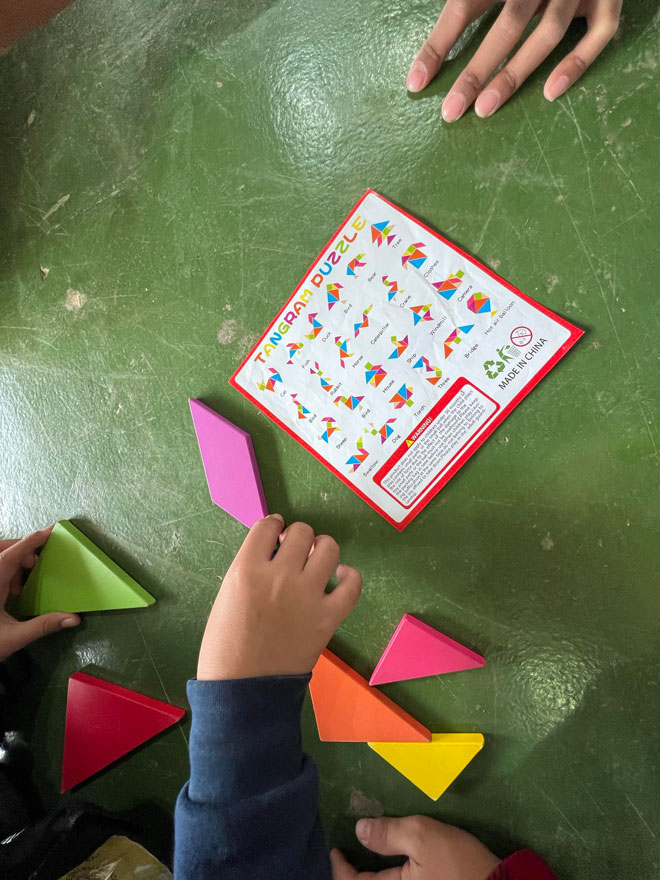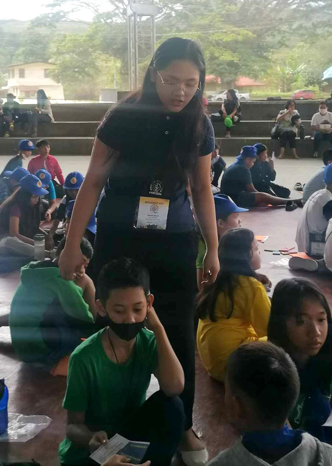 Zaphira Arjona, a college student from Mountain View College, is assigned to the Tangram station under the Mathematics Camp. In her role as a facilitator, she takes delight in observing students as they engage with learning shapes and sizes. "We aim to encourage them to explore their creative side by solving puzzles," she expressed.