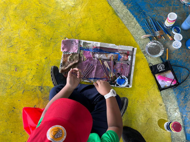 Meanwhile, in the Traditional Arts Camp, students focused on painting any objects they wanted to paint. Others happily collaborated with their peers on the ideas of their paintings. Pr. John Mark Benedicto from the Western Mindanao Conference, who led the said camp, encouraged the students to express their emotions through art. "I always tell the children to put their feelings into art."