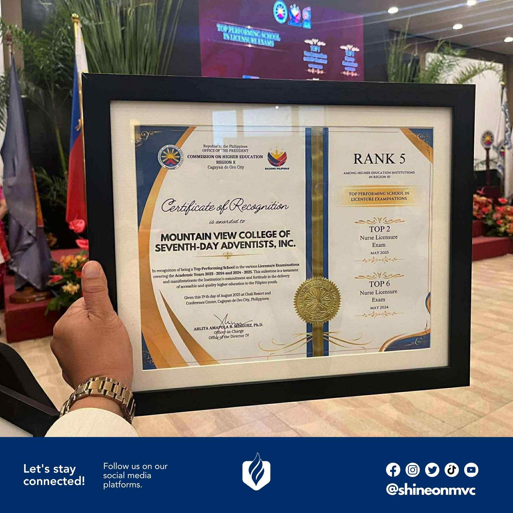 Mountain View College remains committed to fostering a nurturing and holistic educational environment, emphasizing not just academic proficiency but also the development of character and spiritual values. Congratulations to Mountain View College! All glory be to God!